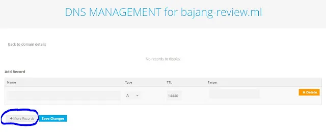 setelah di tambahkan 6 kolom dan jangan lupa ubah 2 kolom teratas dengan type CNAME setelah itu masukan CNAME yang di blog anda seperti di bawah ini