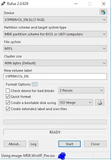 pada gambar di atas yang di bagian warna biru itu adalah file windows yang admin mau extract yaitu windows xp, setelah READY statusnya kemudian anda klik Start dan tunggu hingga prosesnya selesai karena agak lumayan lama, anda juga bisa tinggalin untuk pergi buat kopi. Setelah selesai kemudian nanti anda tinggal klik tombol close yang di samping tombol Strat itu dan proses Extract windows menggunakan rufus 2.0 selesai.